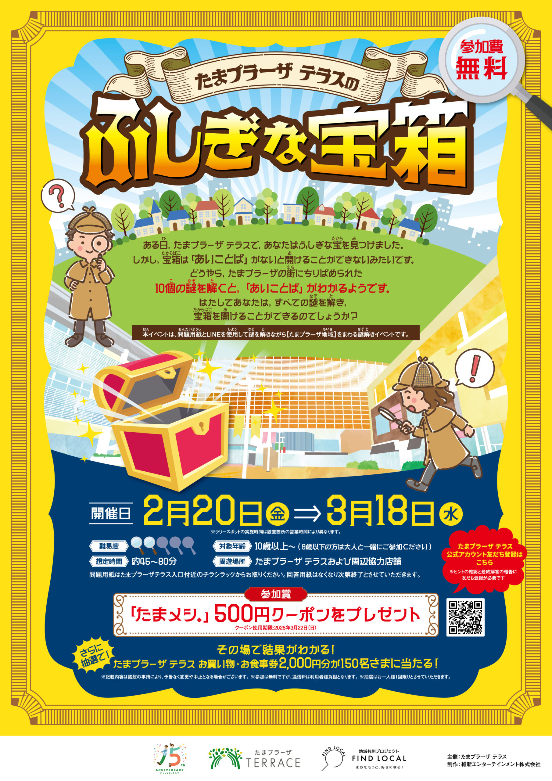 紙LINEファミリーたまプラーザ テラス周辺をめぐりながら、謎を解く参加無料の体験型謎解きイベントです。 開催期間 2026年2月20日(金)~3月18日(水) 料金 無料 会場 たまプラーザ テラス 公式HP https://www. […]